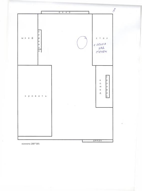 Комната 288*385 см. Помогите, пожалуйста, расставить мебель. Может вы что-то добавили бы или поменяли местами?