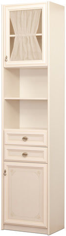 Если над столом полки, то нужен ли стеллаж и также куда его лучше поставить? (Дверки открываются на любую сторону)