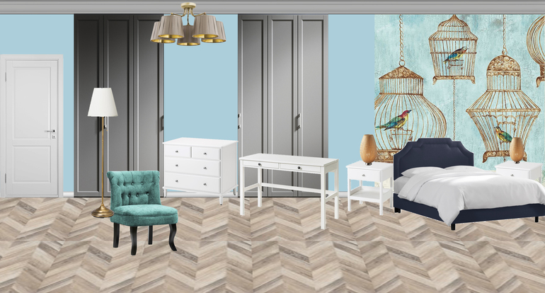 И оттенок голубого цвета на стенах на вашем коллаже на мой вкус не очень. Нужно что-то посложнее, серо-голубой, например.