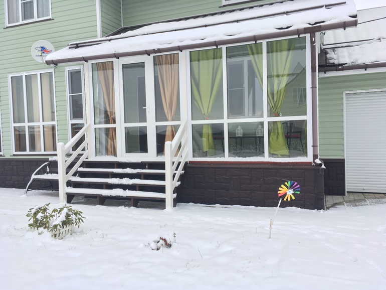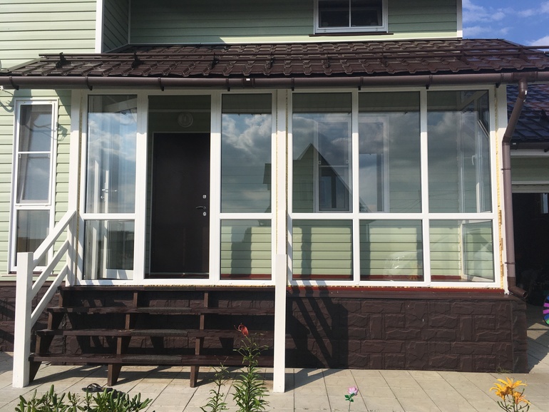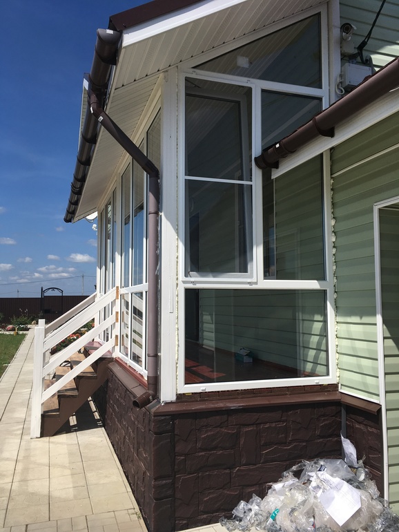 Да, у нас и в гостиной такие окна. И получилось сейчас крыльцо как продолжение стены дома)