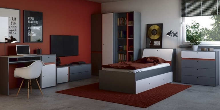 В детской старшей дочери такие же цвета мебели как у вас, стены будут двух фиолетовых оттенков-ее любимый цвет. Гостиная белая с темной стеной, кухня белая с темным фартуком. Ванна бордовая с белым, туалет вот один в кирпичики)