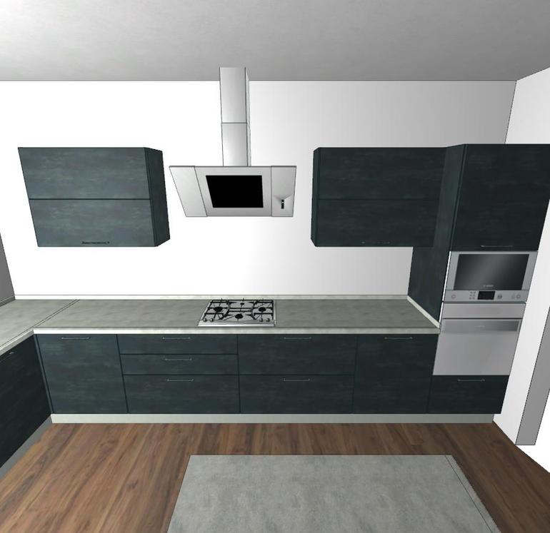 На мой вкус - лучше чёрную технику взять к вашей кухне. Что меня немного смутило в вашей кухне- это навесной шкафчик, который возле вытяжки- по отношению к вытяжке он правильно весит, а с другой стороны к стене нет симметрии и пустовато в углу. Не хотите или длинее туда шкаф, чтобы прям до стены или к этому навесному шкафу, как продолжение полки сделать сбоку?