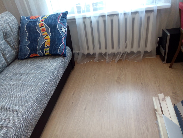 Обрезали длину занавески, да многовато оставили...