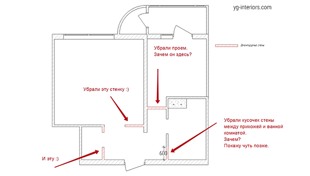 И еще, длинную никчемную стену мы разбавили зеркальным вставками, чтобы не было ощущения непонятно почему стоящей здесь громадины!