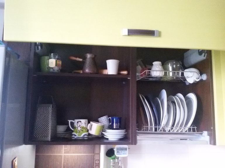 Я имела в виду вместо 2 горизонтальных сверху 2 вертикальных) т.е. у вас 3 пары можно разместить. У мамы сделано, как у вас, в итоге высокую посуду некуда сверху убрать. Вот у меня как: