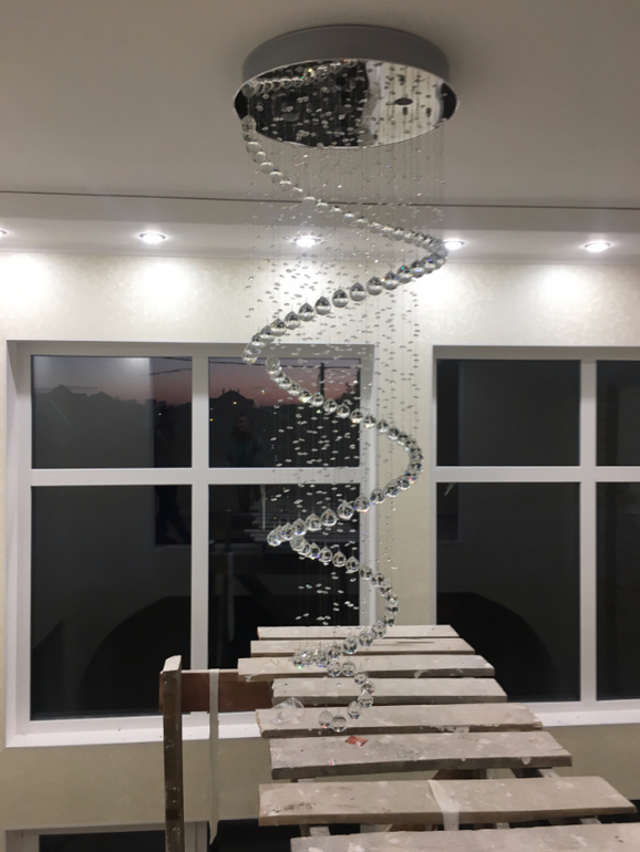 Люблю такие вот штуки . Зашла я тут к соседу - люстра в стакане 10 метров , собрана почти в ручную из разных материалов , выглядит в реале фантастически )