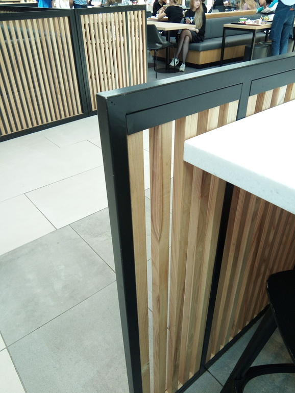 Когда прочитала вашу тему как раз сидела шаурму ела в торговом центре около деревянных реек, все сфотографировала.