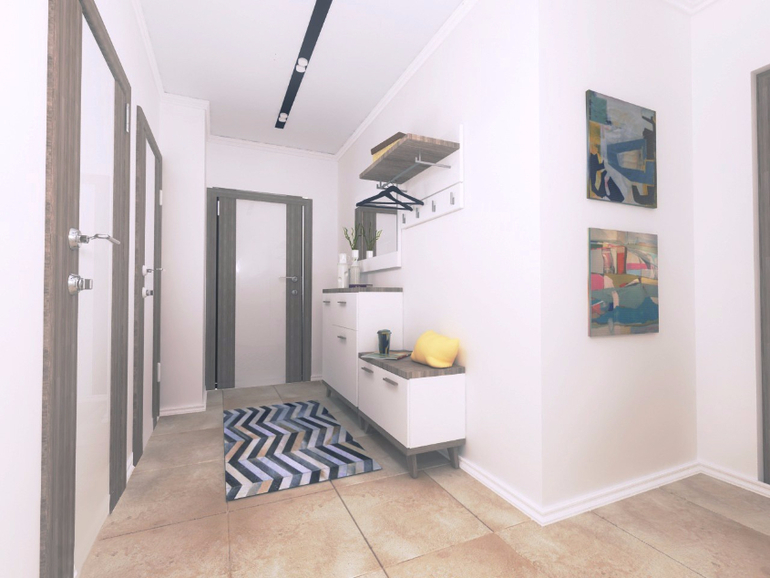 Прихожая получилась светлая, просторная и прекрасно входит в общий интерьер.