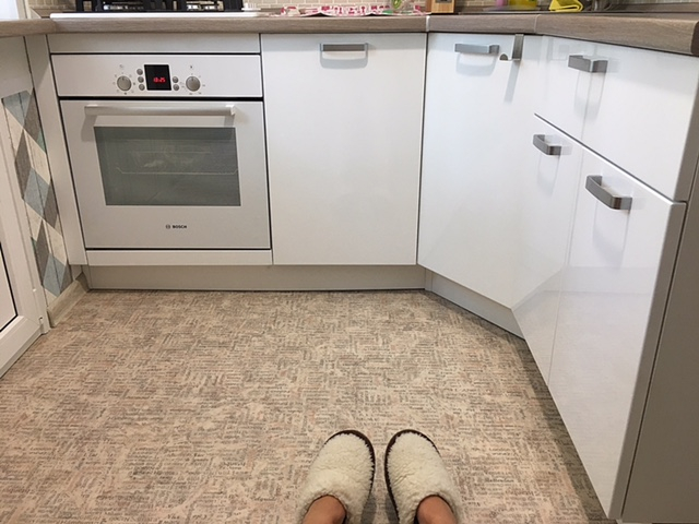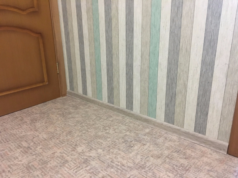 Полы менять мы не стали. Просто прибили фанеру. И положили линолеум. В кухне и коридоре один.