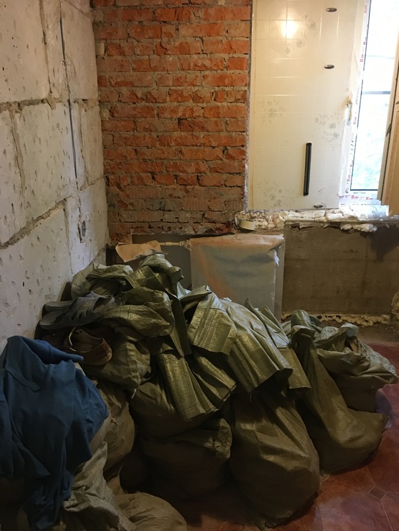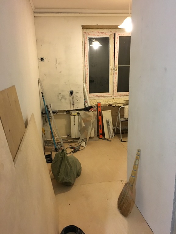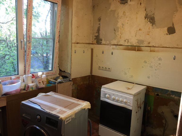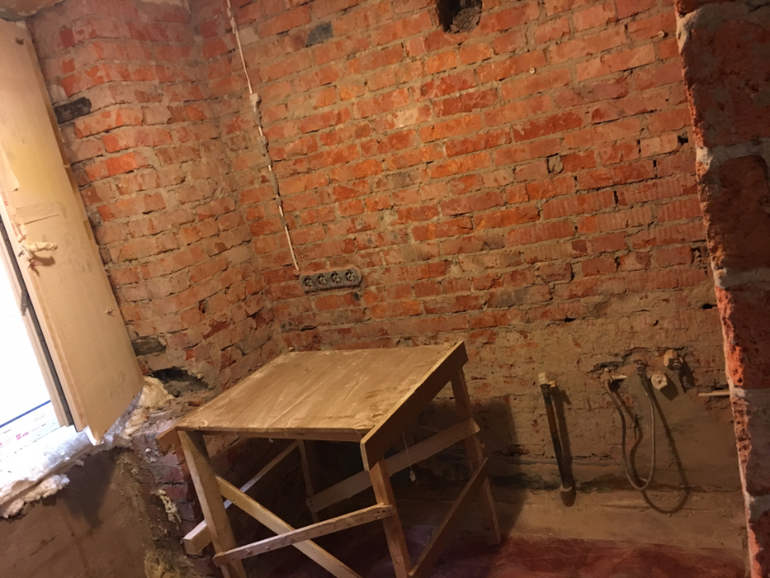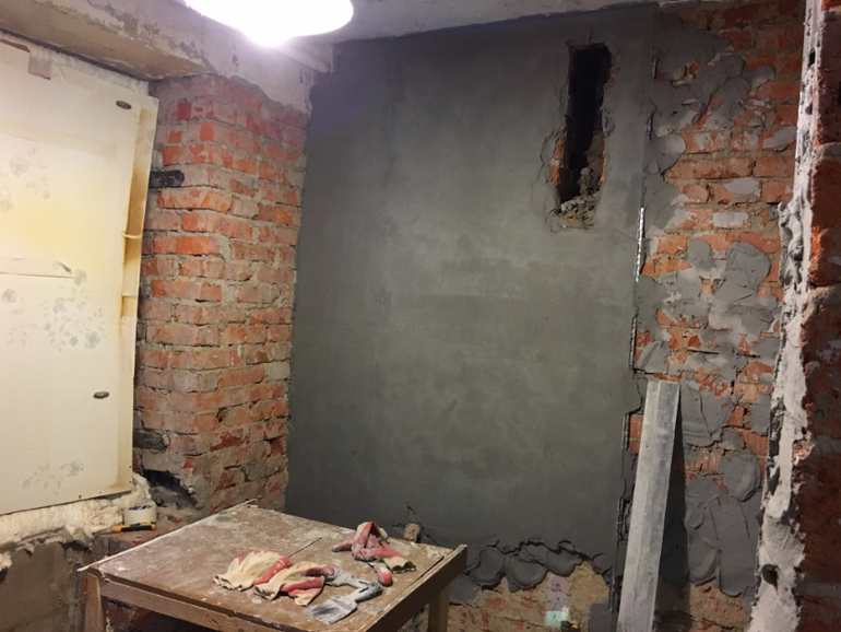 На след день к нам пришли рабочие. И понеслась... Стены ободрали аж до кирпича. Что творилось в нашей маленькой квартире можно только представить, куча пыли, грязи, муж целыми днями проводил здесь (брал отпуск в 2 недели).