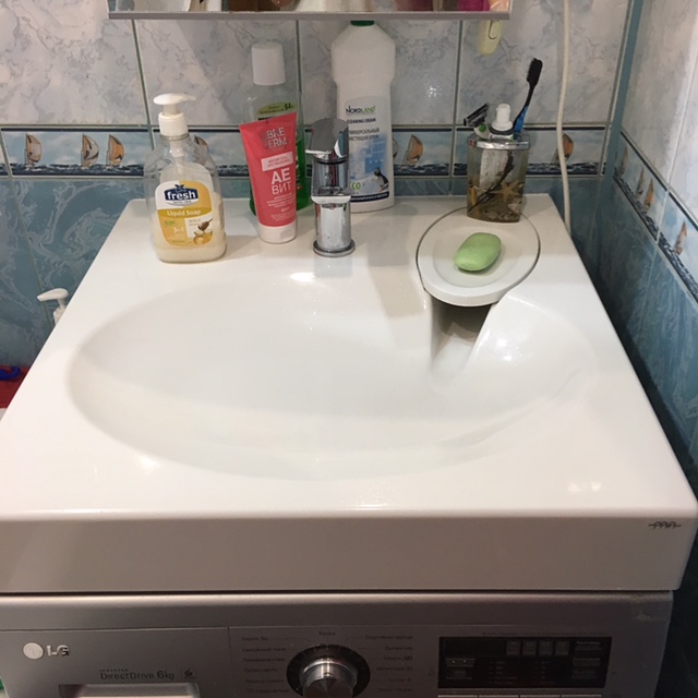 Пы.Сы. Стиралка у нас переехала в ванну. Под нее купили специальную раковину, тоже увидела такую здесь на ББ и уже давно о ней мечтала. Она суперская, хотела сэкономить и взять нашу кувшинку, но она и рязом с этой не стоит)