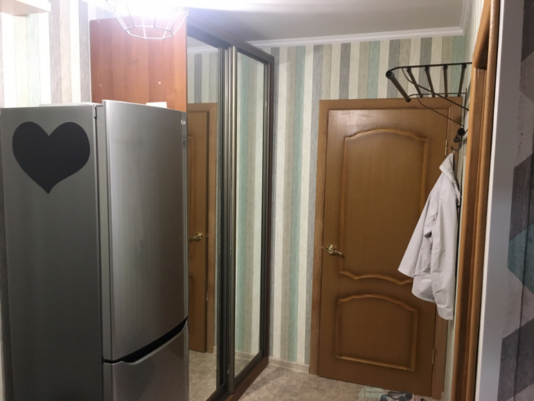 Дело в том, что мы делали вместе с кухней сразу и коридор. И срач был везде. Коридор делался в целях переезда в него холодильника. На кухне ему увы места нет. Коридор получился у нас сборная солянка из старого шкафа, недорогих обоев и прочего. Лишь бы впихнуть. Так что красоты в нем нет