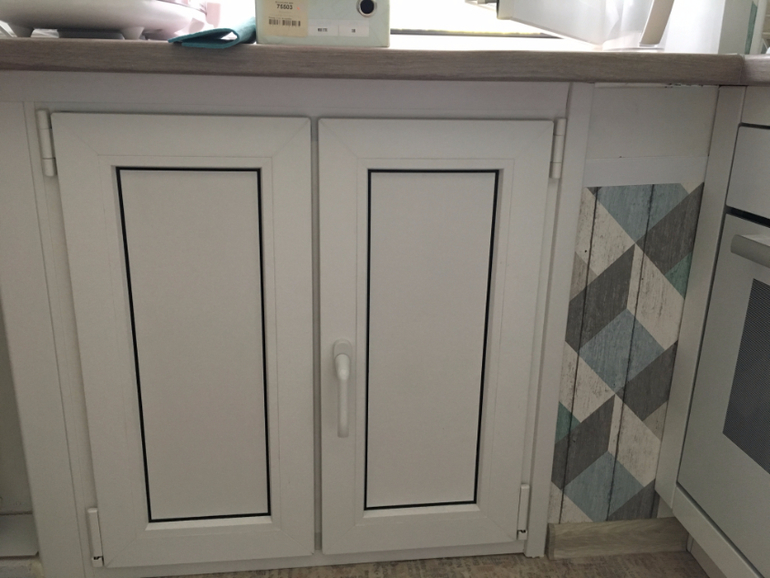 Еще у нас возникла проблема со шкафчиком под окном. Мы его делали там же, где и окно. Но они нам его сделали не под ключ (замерщика принимал муж и ему сказал, что стенки там будут, вам мол только полочки сделать останется). Ага, сделали они нам. Дверь по сути только поставили за 11 тысяч! Как я была зла... Сколько нам проблем доставило доработать этот шкаф до ума