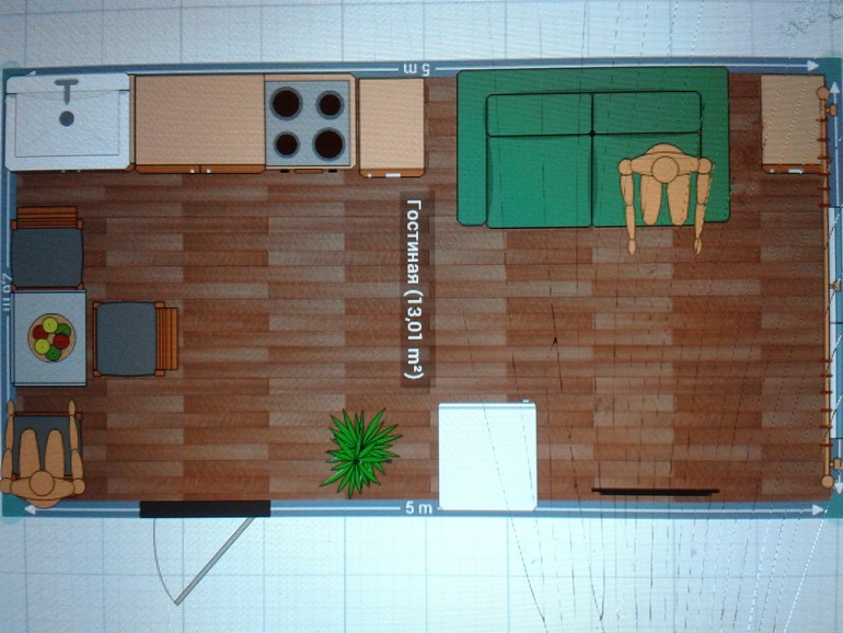 А если линейную делать, то куда стол и стулья и диван? Вот так я ещё думала