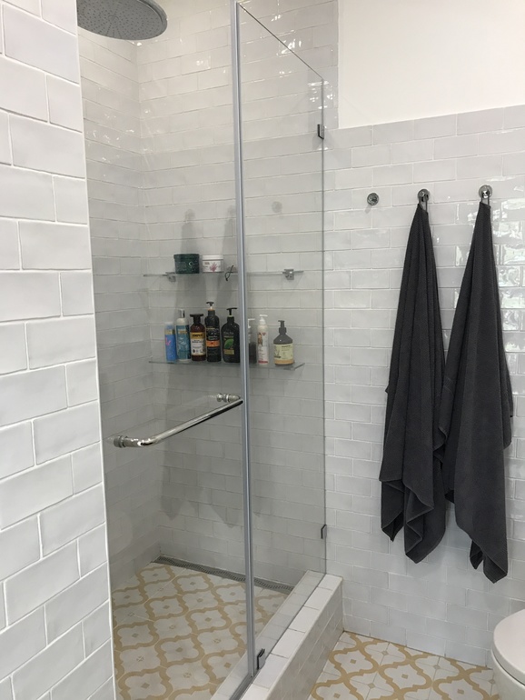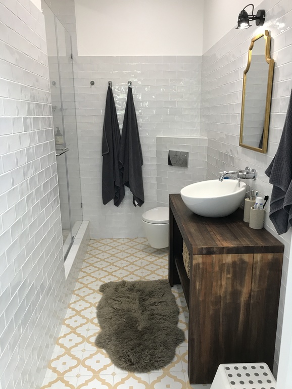 Очень, очень все понравилось! Я сейчас тоже в предвкушении ремонта, голова кругом, пытаюсь искать понравившиеся интерьеры и добавляю их в закладки, у вас прямо все очень - очень красиво. Подскажите, в гостевом душе что за двери стеклянные, это просто двери и тумба какого производителя? Сантехнику какого производителя брали?