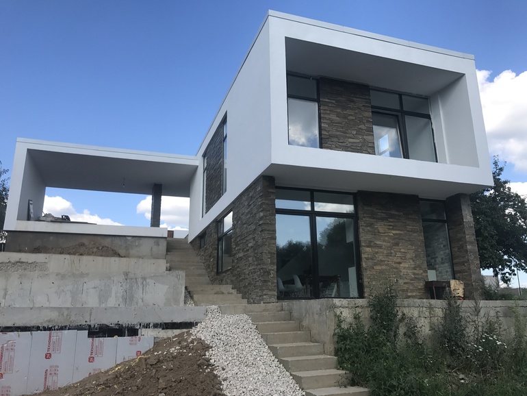 Итак, поехали. Начну с внешнего вида дома. Кто ещё не видел, дом находится на склоне. Вход в дом со второго этажа.