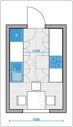Купили 2-шку в доме серии ИП46-с. Ломаю голову, как расположить мебель на кухне. План прилагаю. Кухня - та, что с балконом.