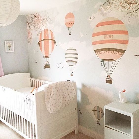 У нас покраска и рисунок над кроваткой. Когда у малышки будут свои интересы нанесём соответствующий рисунок вместо нынешнего.