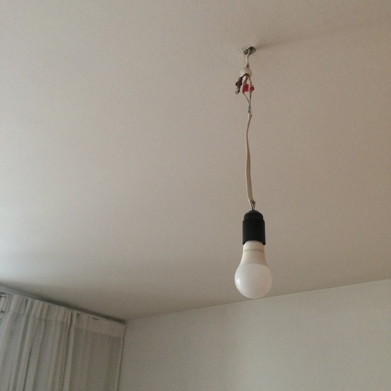 2) В процессе ремонта не смогли между собой решить судьбу "лампочки Ильича", свисающей с потолка ровно посреди комнаты, и освещающей оттуда разве что ковер)).