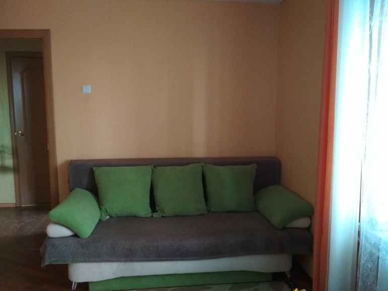 Мне видится тут дерево в углу, немного заходящее на соседнюю стенку веточками. Поищите на алиэкспрессе много разных наклеек на стену. Вам бы в цвет диванных подушек, чтобы холодный диван подружить с теплыми стенами.