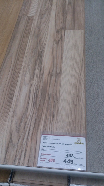 Если сомневаетесь насчёт качества, то смотрите, какой класс стойкости у этого ламината. На фото просто не видно, что написано. Вижу только цену. Может, увеличьте у себя как-то это фото и посмотрите, что там написано. Какой там класс и толщина ламината? Можете вот тут почитать о том, какой лучше брать в квартиру. Потому что многие покупают 33-34 класс, а это ни к чему. Такой ламинат стелят там, где есть повышенная нагрузка на пол. Например, в ресторанах, офисах и т. д. А люди покупают домой такое. Это лишняя трата денег.