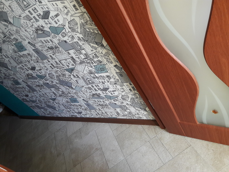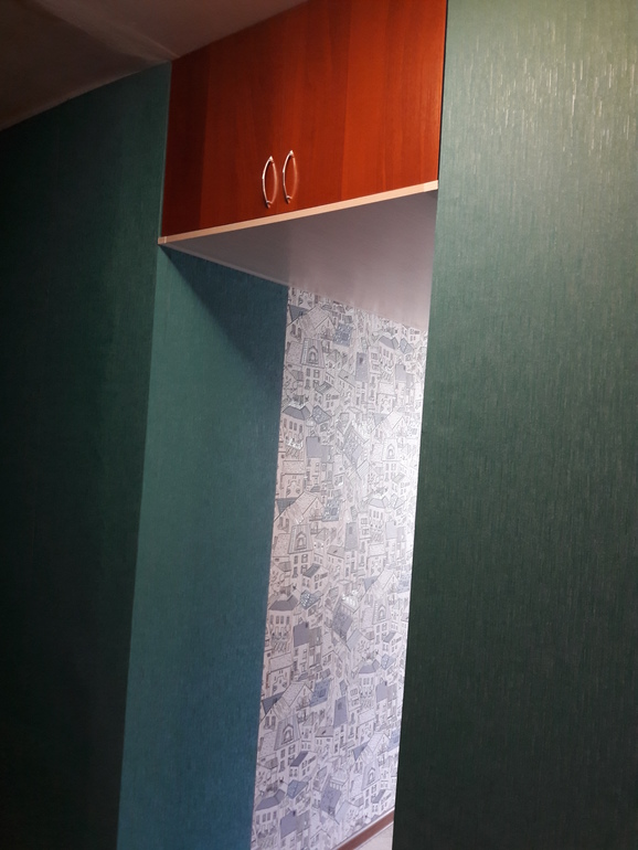 Ремонт делаем частями, в апреле сделали кухню и часть коридора (это заключается в том, что сделали андресоли, шкаф купе и положили плитку в "нежилой" части квартиры). На этом мы планировали и закончить ремонт коридора, но во время ремонта у нас испортились обои и мы купили в леруа со скидкой обои, чтоб хоть что-то наклеить, да и прожить еще год.