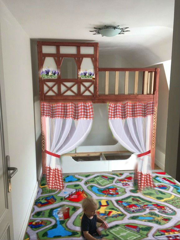 Интерьерное решение детской комнатыДавным-давно спрашивала здесь мнения, в какие цвета покрасить кровать https://m.babyblog.ru/community/post/housedesign/3198131. С тех пор много воды утекло, и концепция "замок принцессы" видоизменилась в концепцию "фахверковый домик". Показываю промежуточный результат, так как белые элементы, вероятно, перекрасим в бледно-желтый. Но все-равно результат очень нравится. Вдохновлялись вот такими домами