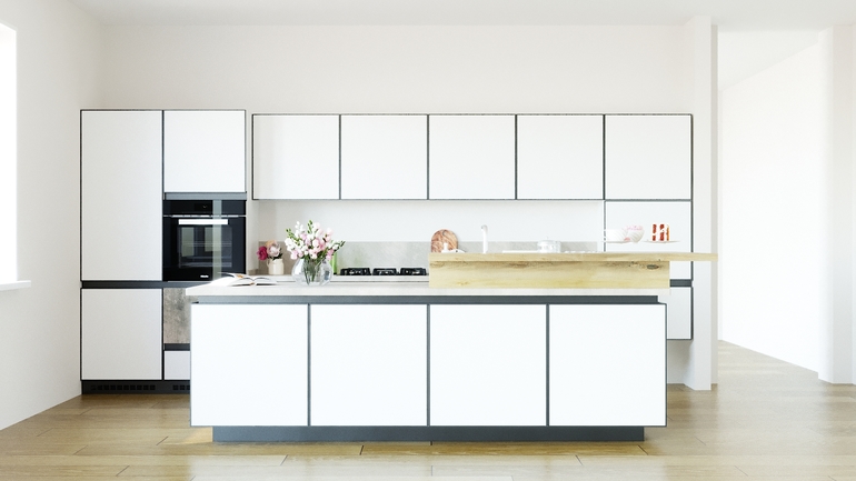 Я заказываю на мебельной фабрике в своем городе, материалы все ищу сама (пластик арпа италия, профиль, системы блюм и хетич, столешница керамогранит). Ребята уже нам много всего делали