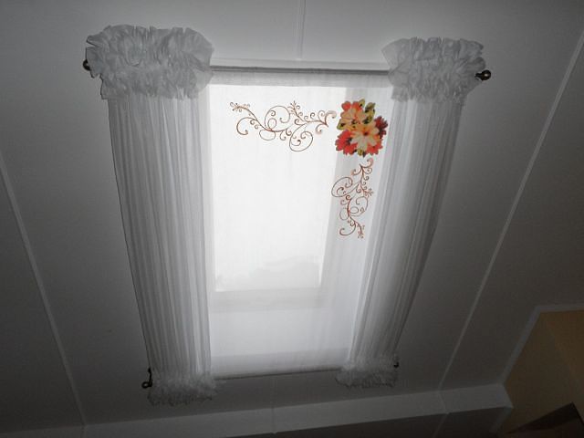 Карниз можно сделать 2-х рядным, чтобы повесить прозрачную вуальку, для рассеивания света, и вторым рядом шторку, чтобы закрывалась на ночь.