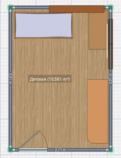 Слева от двери думаю поставить кровать, напротив кровати окно, под ним стол. Сразу по окончанию стола думаю поставить стол.