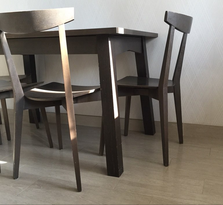Мне кажется к такому гарнитуру просяться спокойные обои, а яркости добавить в цвете штор, стульев и всяких мелочей для кухни.