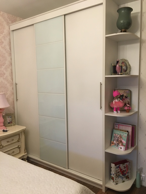 Мне нравится шкаф, оставила бы...и люстра по стилю подходит, но вот мне резанул глаз карниз...почему такой короткий и не на ширину окна?