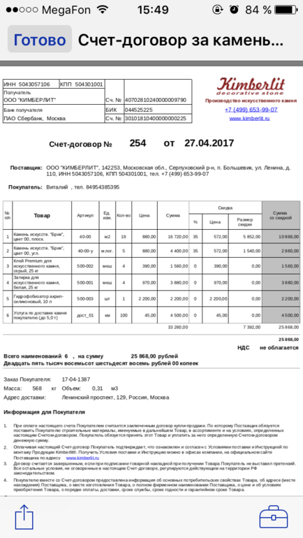 Вот фотка счета, посмотрите цены для интереса. Цена 572 рубля)