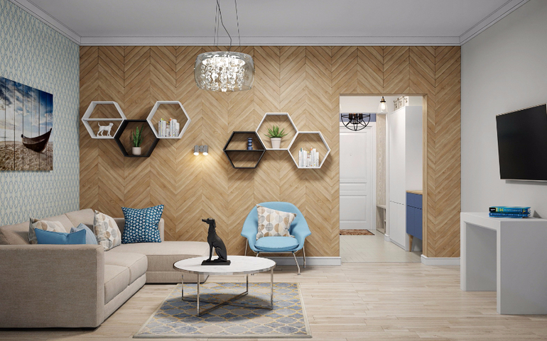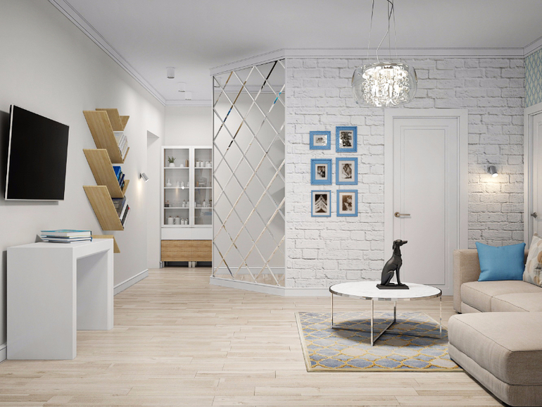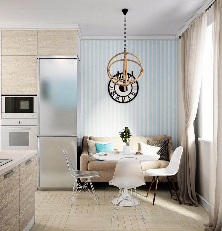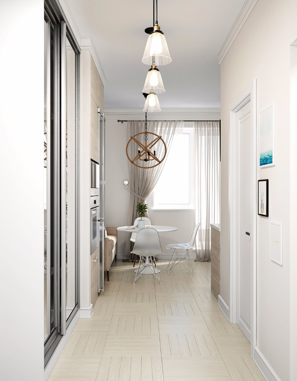Изначально стояла задача создать современный интерьер с элементами классики или таких стилей как Сканди и Прованс. Позже, по обоюдному желанию, мы добавили яркие элементы из ретро стиля 60-х. Что, надо сказать, заметно оживило пространство и придало индивидуальности.
