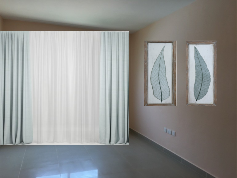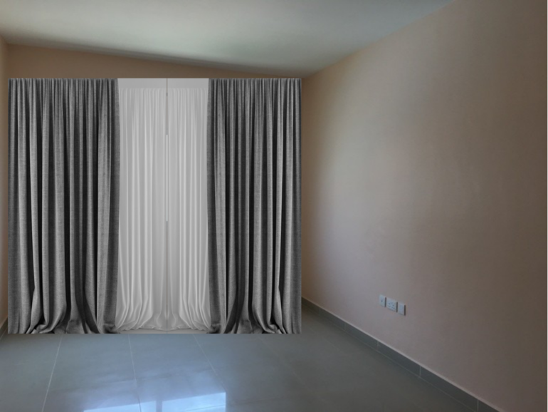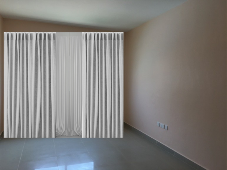 плохо что вы сделали такой узкий карниз он визуально делает уже комнату и конечно шторы будут частично перекрывать дневной свет ,вот для сравнения так у вас ,а вариант выше как хотелось бы