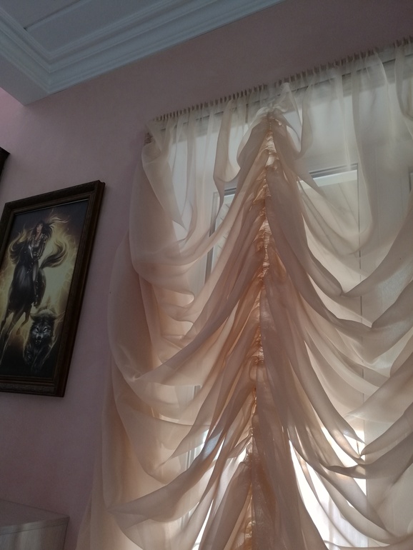 Штор не было...была тюль с сакурой и красный ламбрикен. Сейчас посмотрю есть ли фотки.