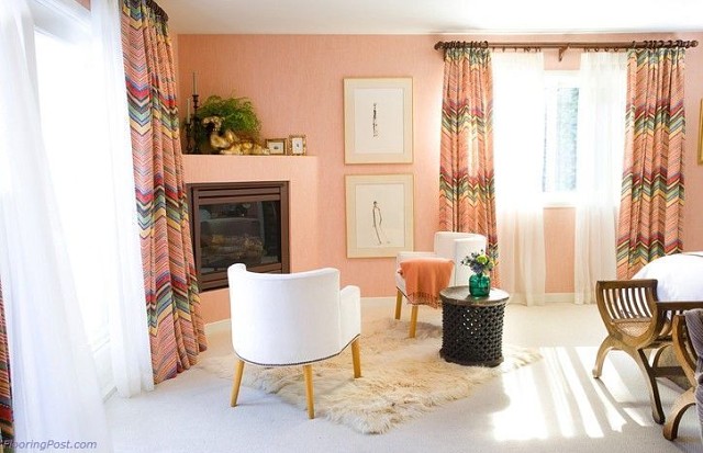 Теперь вопрос, мебель будет Белая. Какие выбрать шторы и занавески чтобы хоть как-то уравновесить это буйство лососевых красок?.... :/