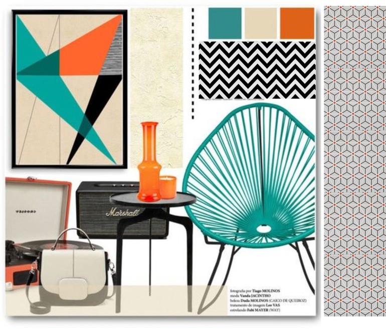 вот что что, а белого в данном случае надо как можно меньше - чисто в акцентах. Или вместо белого, бежевый использовать. Вам надо уравновесить этот яркий насыщенный цвет. Идеальный компаньон (если я себе правильно представила ваш цвет лососевым) - изумрудный (темно-зеленый) или темно-синий + бежевый и черно-белая графика.