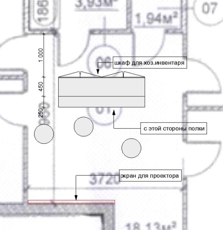 1. Если ничего менять нельзя, то ставлю в левый угол шкаф-купе для нужностей/одежды, разграничивая холл перегородкой-шкафом, дабы закрыть видимость двери в туалет из прихожей. Плюс буду искать выдвижной экран для проектора, чтобы повесить над проходом из прихожей и пуфы для просмотра выносные).