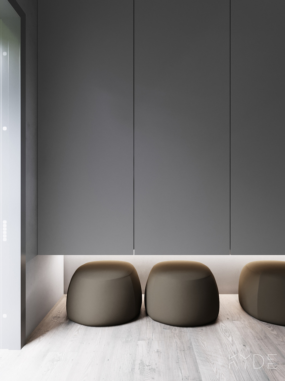 как то так я себе это представляю: шкаф глубиной 45 см + полки подвесные, под которые можно убрать пуфы, когда они не нужны