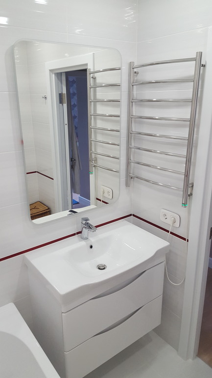 Ваша ванная очень красивая...и она так смотрится, потому что белоснежная...оставьте эту белезну) она никогда не надоест!