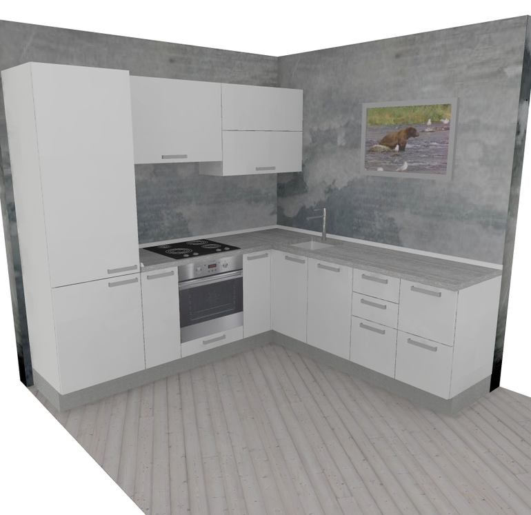 Просто стены будут скорее всего серая декоративная штукатурка + серая столешница, надо разбавлять более светлым фартуком