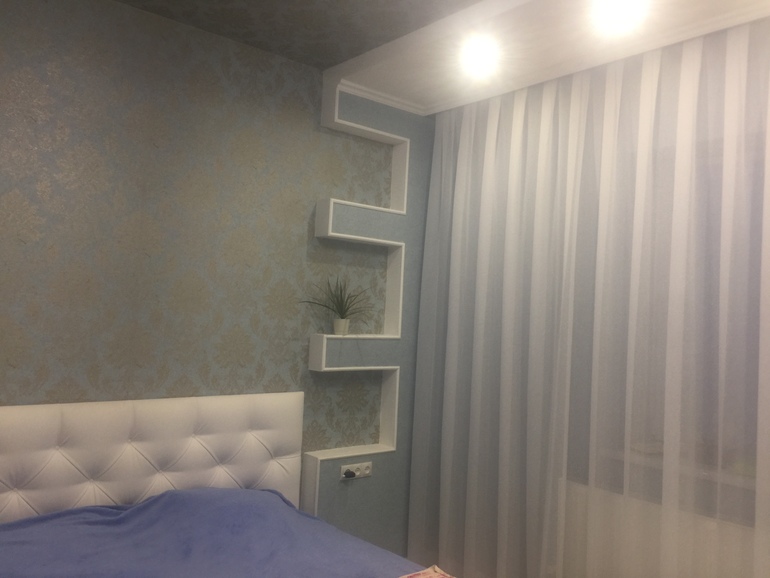 Красивая спальня! Молочного цвета плотные шторы можно или под цвет покрывала, если оно единственное используется. Ведь синего много оттенков есть! А золотых штор тоже очень много, поэтому распечатайте фото и походите лучше по магазинам, присматриваясь. Вариант неожиданный может так подобраться!) Удачи!)) Вдохновения!) Нам тоже предстоит ремонт! С нуля, в трешке, голова кругом!)))