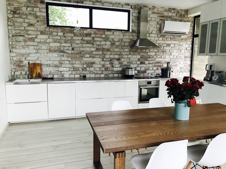 У нас тоже нет верхних шкафов и вытяжка одиноко висит на стене. Но я так и задумывала.