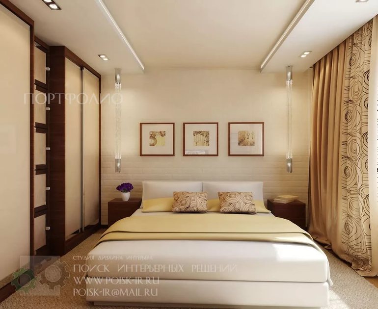 Не нужно делать никаких стационарных светильников в спальне,так как можете не угадать с местом установа по очень хитрому параметру,связанному с энергетикой.В процессе практики по энергетике жилья сталкивался не раз с тем,что когда светильник попадал на такое место по периметру спальни,когда активировал одну из десяти специфических энергетик,то при наступление одной из девяти месячных энергетик начинал своим действием ослаблять энергетику человека и везде все было по-разному.Самое простое,что ровно месяц у человека не шли дела.Самое страшное,это когда человек заболевал ровно на месяц.И все бы ничего,если через месяц болезнь проходила.Иногда заболевание перетекало в хроническое.