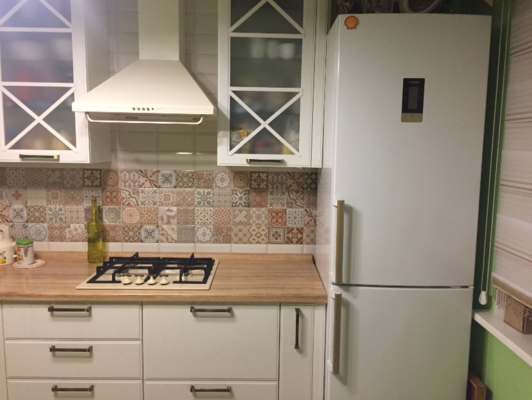 Интерьерное решение кухниДевочки всем привет! обращаюсь к вам за помощью, уже мозг кипит. Кухня будет белый глянец, индукционная плита, вытяжка как телевизор, духовой шкаф микроволновка чисто черные, ручки у кухни черные, столешница под дерево. Какой фартук подойдет? хочу керама марацци суррей либо чисто белую, либо коричневую? фото с интернета и беби блога(извините у кого стащила) и еще вопрос какие шкафы вам больше нравятся крест накрест или же квадратиками?