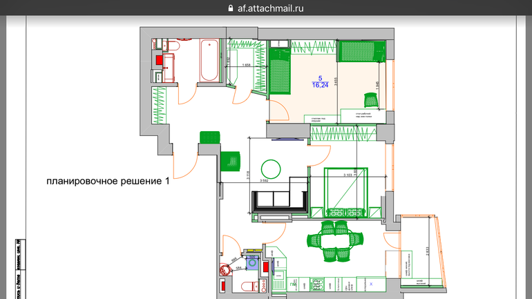 В-третьих 1 вариант удачен тем, что в спальне родителей шкаф стоит вдоль стены с детской, а следовательно увеличивается шумоизоляция между спальнями )))))