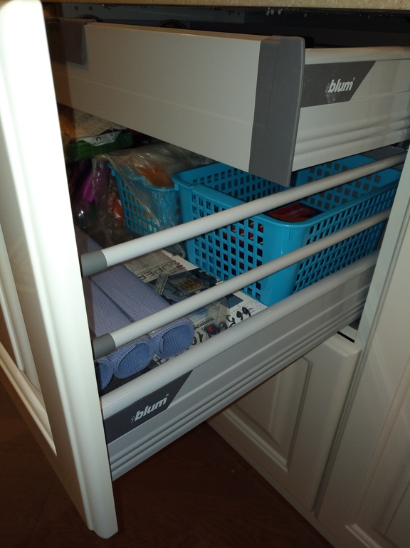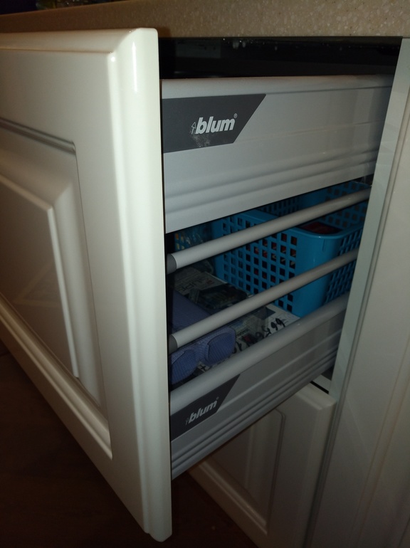 3. Внизу слишком много разных вариантов фасадов: и одинарный, и двойной, и тройной и слева еще другого вида. На мой взгляд перебор. Я бы постаралась сократить количество видов. Можно сделать скрытый ящик (когда за одной частью фасада 2 ящика).