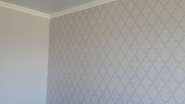 Еще вариант - однотон... ну не знаю... бледновато, и надо заморачиваться тогда с другим украшением стены (ее длина 4,7м)
