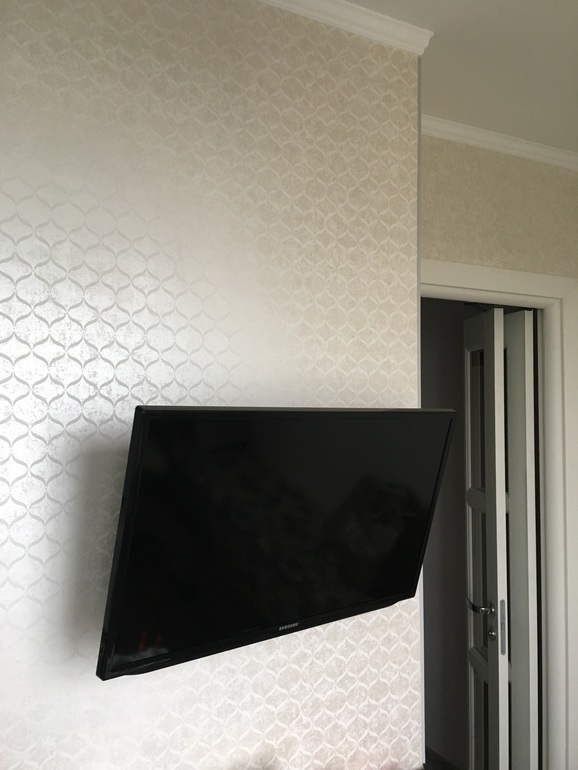 Диляра, добрый день! Нужно было делать чуть ниже)), ниже держателя, чтобы ничего не мешало повороту. Не подскажете, что за обои у Вас? Очень нравятся.))